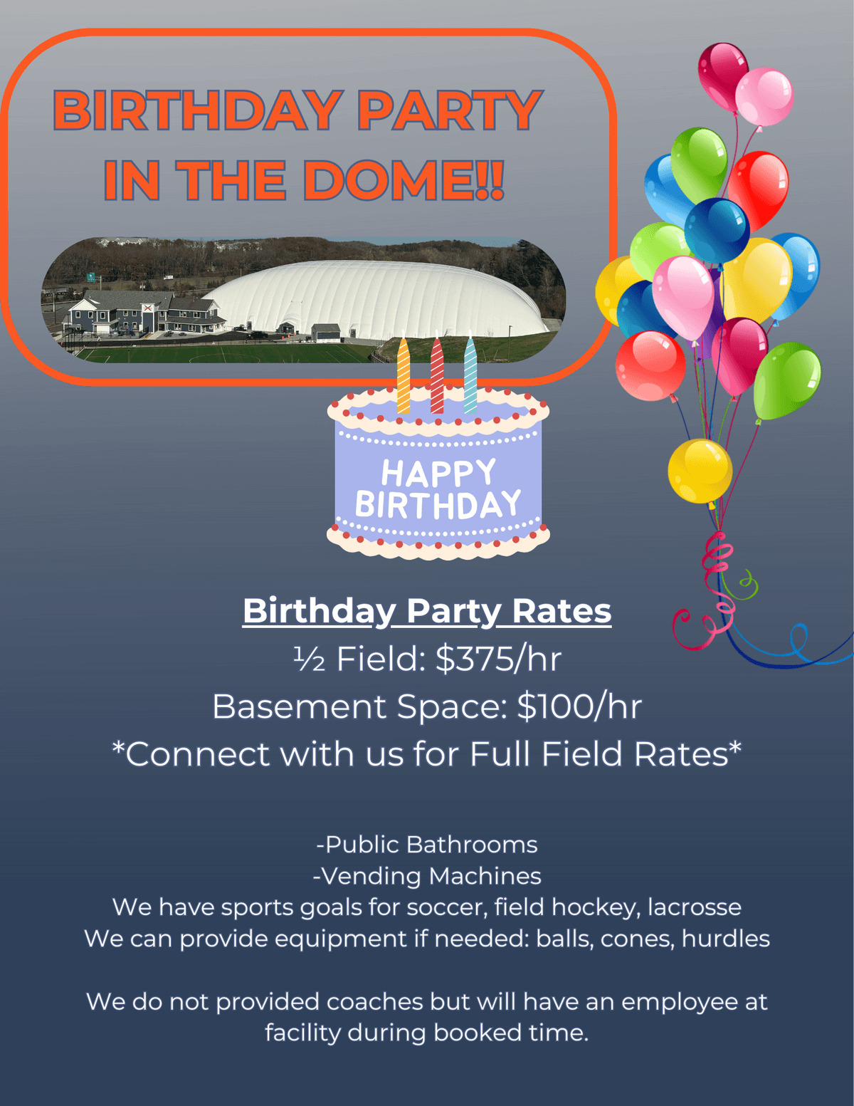 We are fully booked Jan-March 8th. Contact us for birthday inquiries starting the weekend of March 14/15th